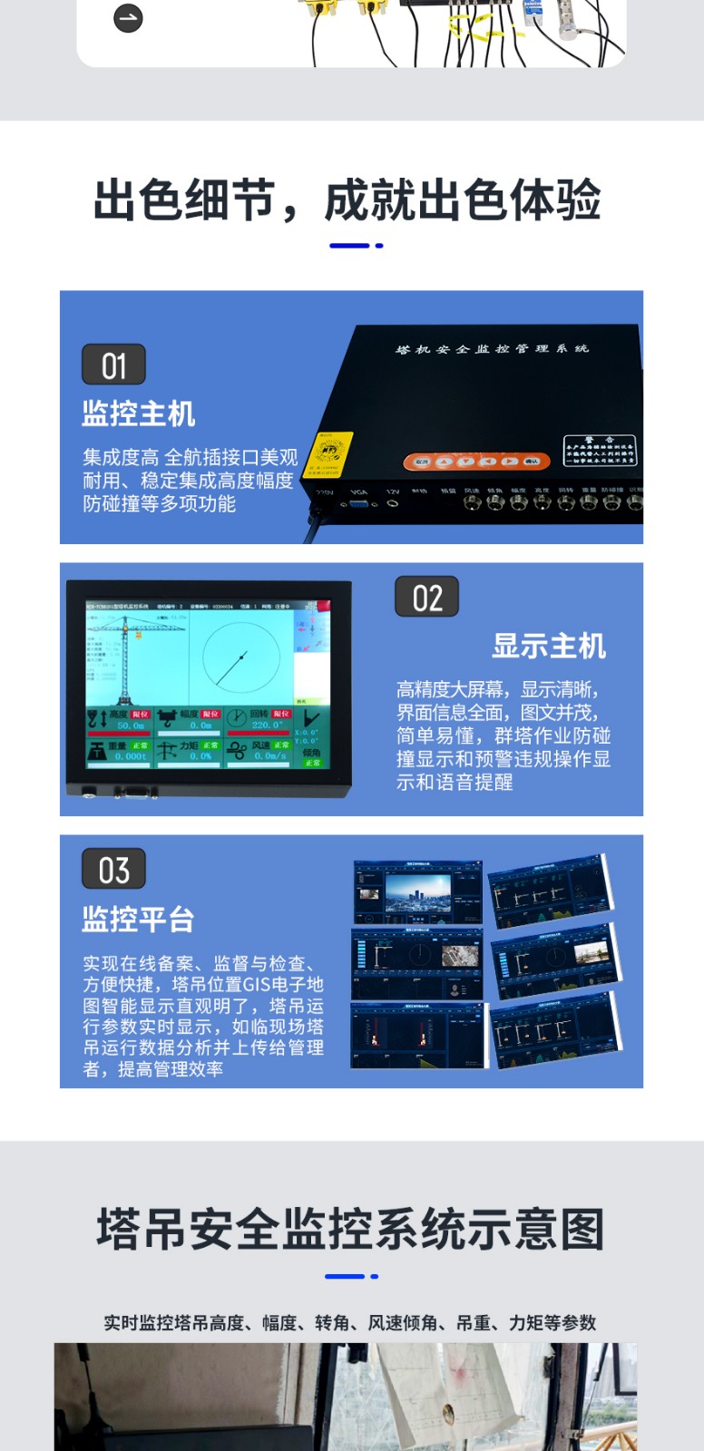 實時采集吊鉤高度傳感器數(shù)據(jù),根據(jù)吊鉤高度的變化,調(diào)節(jié)攝像頭變倍,保證任何情況下吊鉤周圍環(huán)境都能以最佳效果且無盲區(qū)地展現(xiàn)在塔司面前,并實時視頻錄像和遠傳,可防止安全事故的產(chǎn)生,提高工作效率,實現(xiàn)事故溯源和工地數(shù)字化建設(shè)。